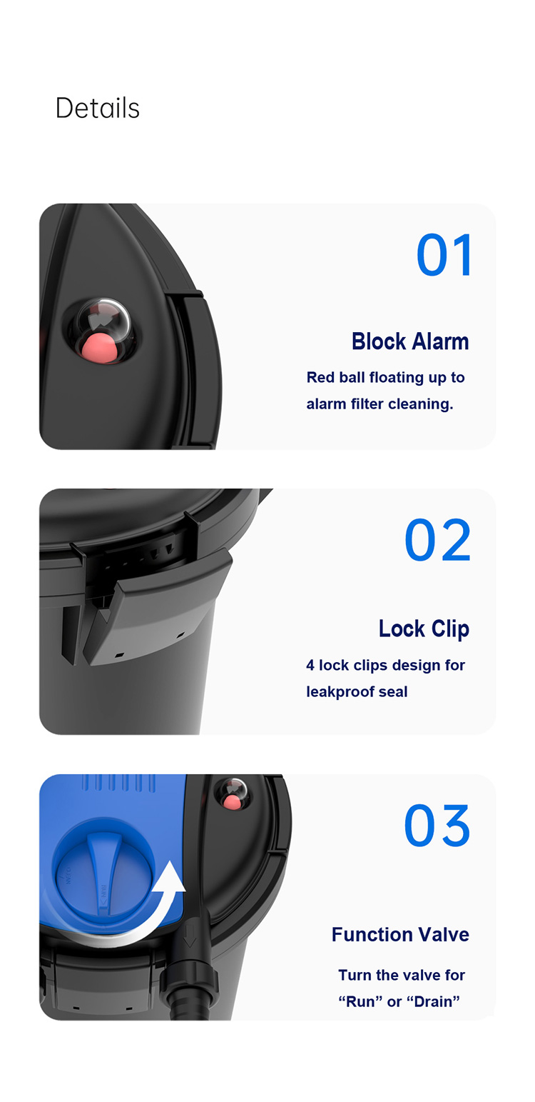 • Build-in UVC lamp can kill algae, virus and harmfulbacterium in the water .